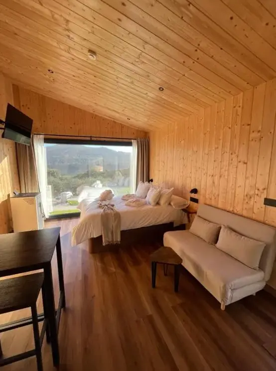 Weitere Informationen zu The Cliffs - Le nid de MartinaCabañas O Recuncho do Sor bietet einzigartige Unterkünfte in idyllischer, ruhiger Lage am Rande einer malerischen Landschaft. Die Hütten sind liebevoll gestaltet und sorgen mit ihrer Sauberkeit und modernem Aussehen für einen komfortablen Aufenthalt. Jede Unterkunft verfügt über eigenes Zimmer sowie überaus praktische Einrichtungen wie Tee- und Kaffeemaschinen.